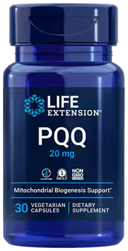 PQQ поддерживает митохондриальный биогенез, который является ключевым для поддержания молодости производства клеточной энергии.